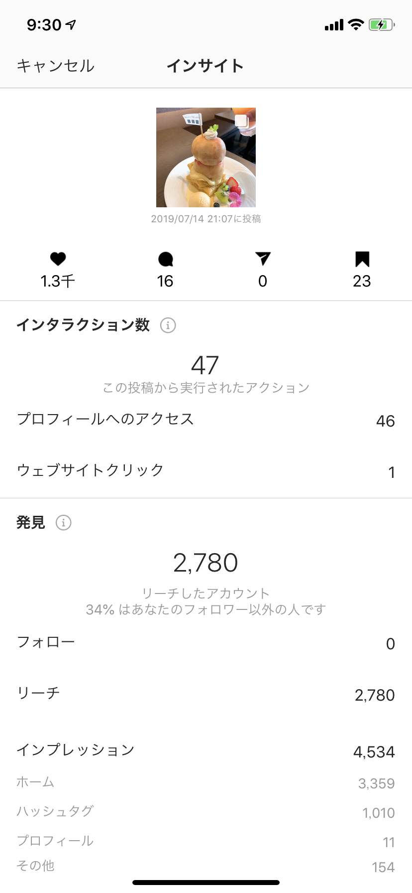 朝9時半です。フォロワー以外のリーチが伸びて来てるのがわかります。